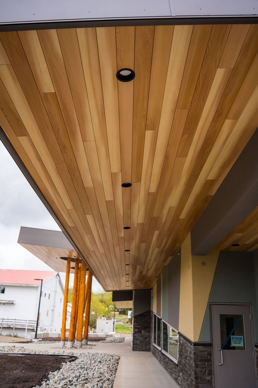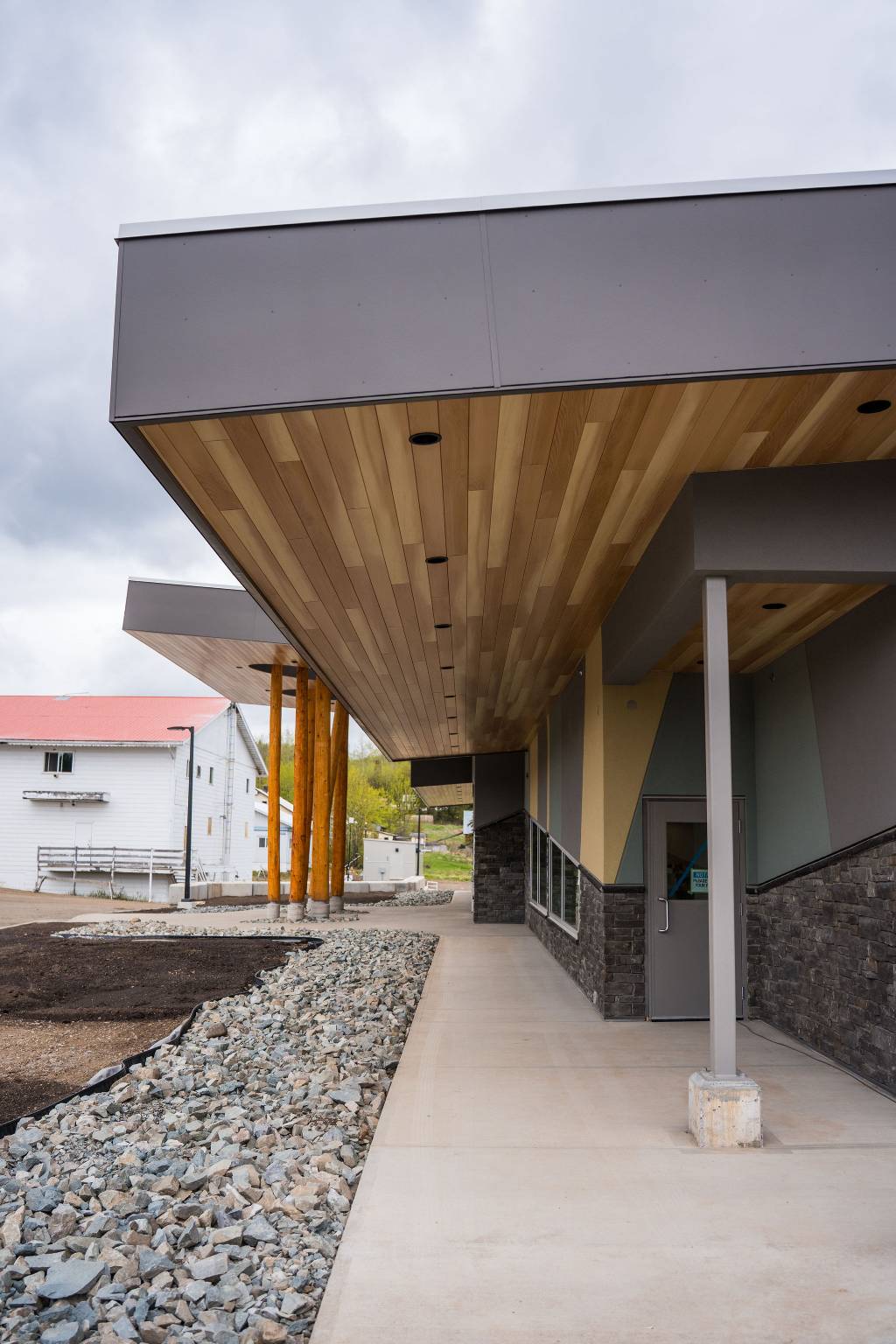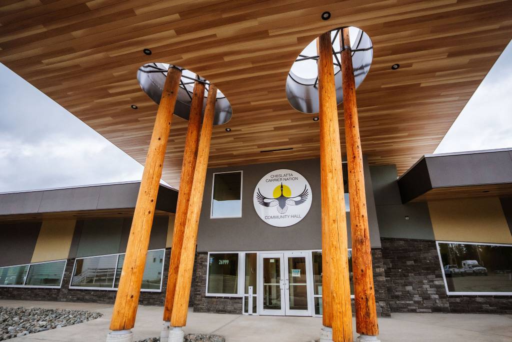 Located near Keefes Road and York Road, 28 km south of Burns Lake, BC, Marmot Builders constructed a 37,000 sq-ft combined community centre and administration building for the Cheslatta Carrier Nation. The design blends a pre-engineered steel superstructure for the gymnasium/hall with wood framing for the administration area, complementing the surrounding environment. The project incorporates 12 custom logs crafted by local First Nation artists, embedding cultural significance, and features striking cantilevered steel canopies at main entrances for aesthetic appeal and durability. Marmot Builders provided well-paying construction and site labor jobs for local First Nation members over two years, fostering community engagement. Collaborating closely with the Nation, the building reflects community values while meeting operational needs, serving as a functional and culturally significant space that promotes community empowerment and regional growth.